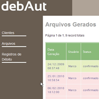 O Debaut gera os arquivos necessário para o debito automático em conta seguindo os padrões do FEBRABAN. Permite de gerenciar os próprios clientes e os valores a ser debitados. O programa permite também de importar o arquivo de retorno gerado pelo banco para verificar o sucesso da operação de debito